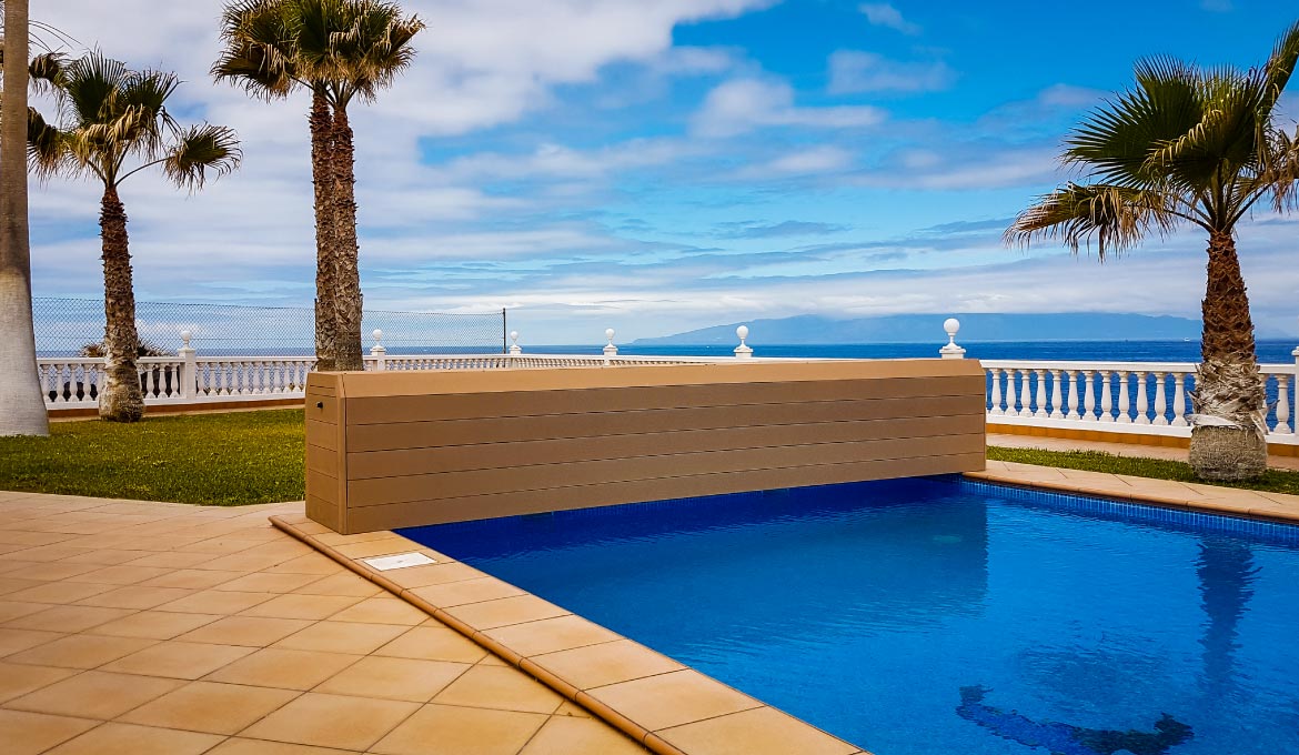 A sua piscina merece o melhor. Por isso, criamos o modelo HAWAI com resguardo para maior longevidade das lâminas da cobertura. Elegante e prático, este sistema não só protege a sua piscina como a integridade do seu equipamento.